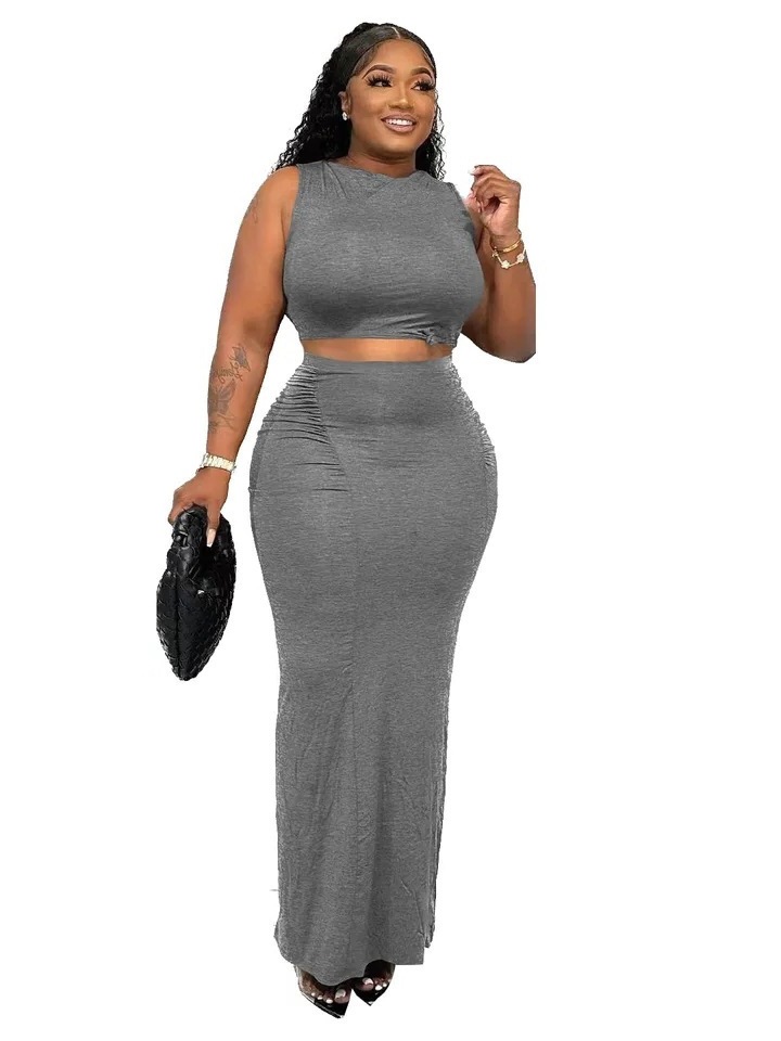 Sexy Bodycon Skirt + Sleeveless Long Top Two-Piece Set Women's Summer Simple Solid Color