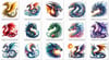 Add a touch of enchantment to your designs with our 60 Watercolor Fantasy Dragons Clipart Collection! This captivating set features 60 transparent PNG files in high resolution (4090x4090 pixels), showcasing an array of beautiful fantasy and elemental dragons in vibrant watercolor style.