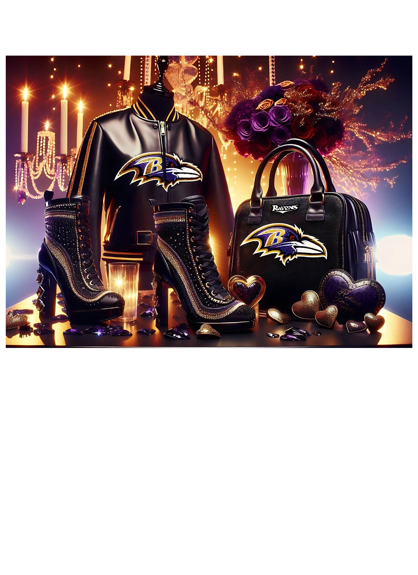 - Theme: Baltimore Ravens fandom meets luxury, combining sports pride with elegant aesthetics.