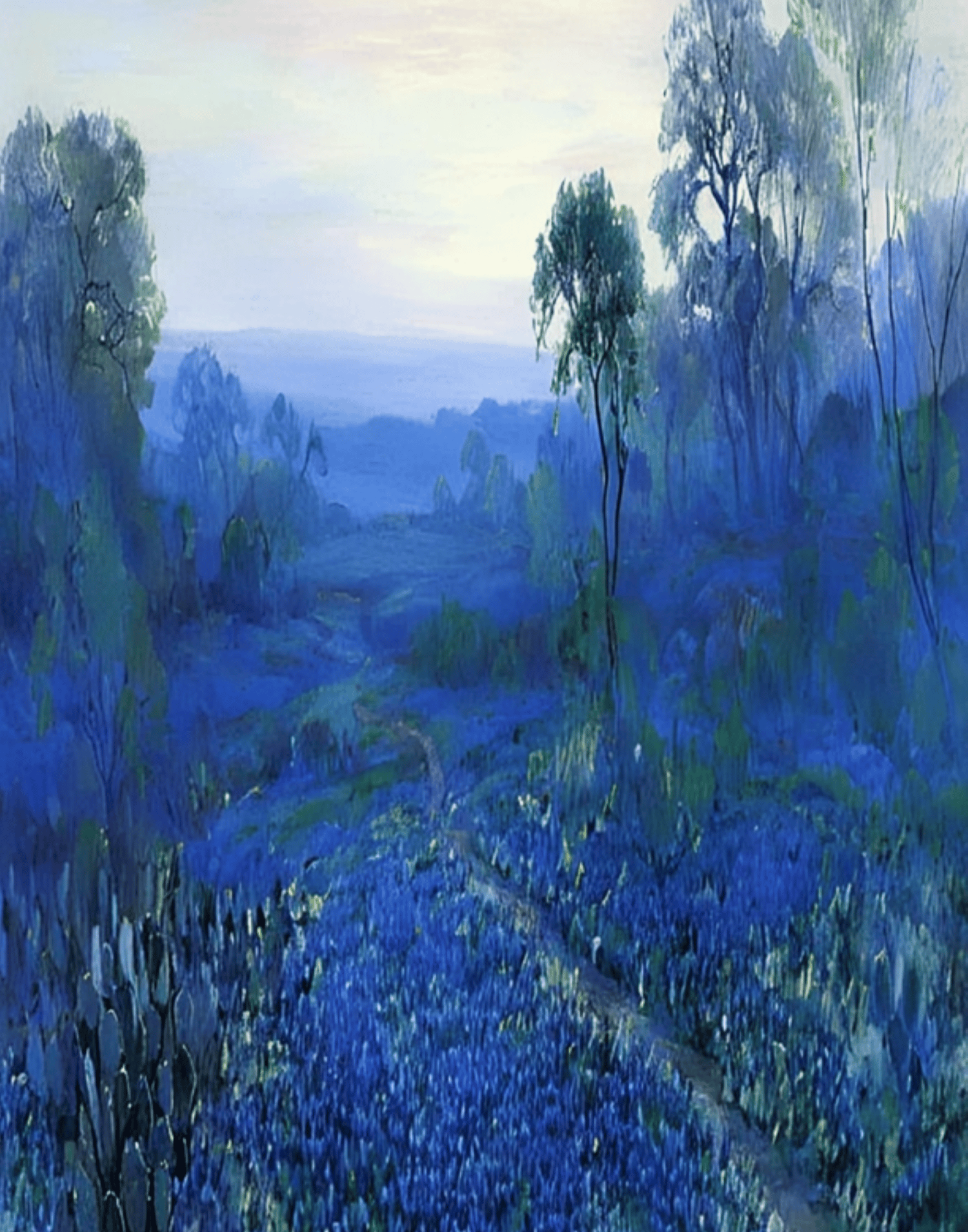 Blue Forest Painting, Vintage Nature Art, Beautiful Nature, Painting