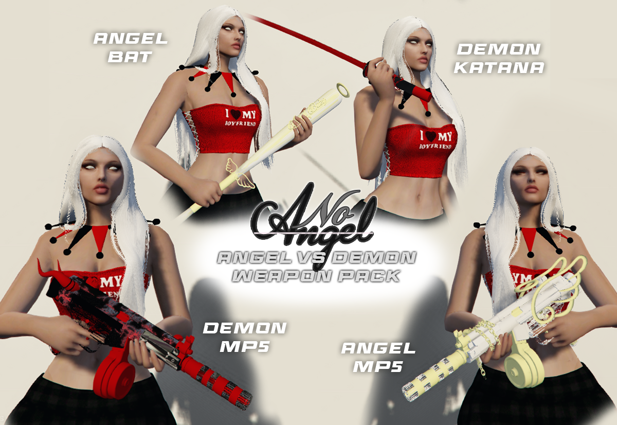 Includes 4 weapons. 2 Guns & 2 Melee weapons! All in the theme of Angels & Demons. Perfect for server cases, personal use, gang weapons~