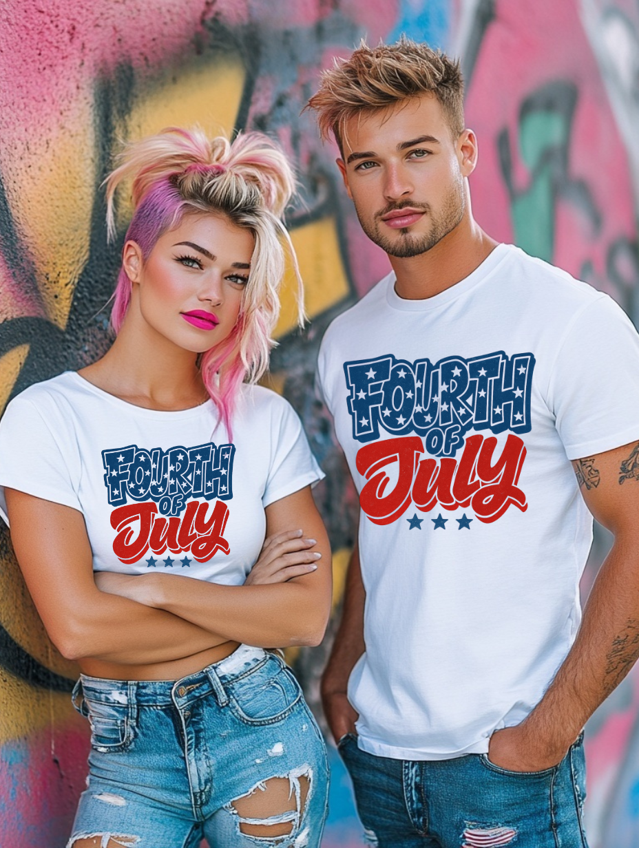 Celebrate freedom in bold style! This high-resolution red, white, and blue digital design features star-filled bubble letters and a retro script “July” that pops with patriotic pride. Perfect for creating custom tees for parades, BBQs, or fireworks shows.