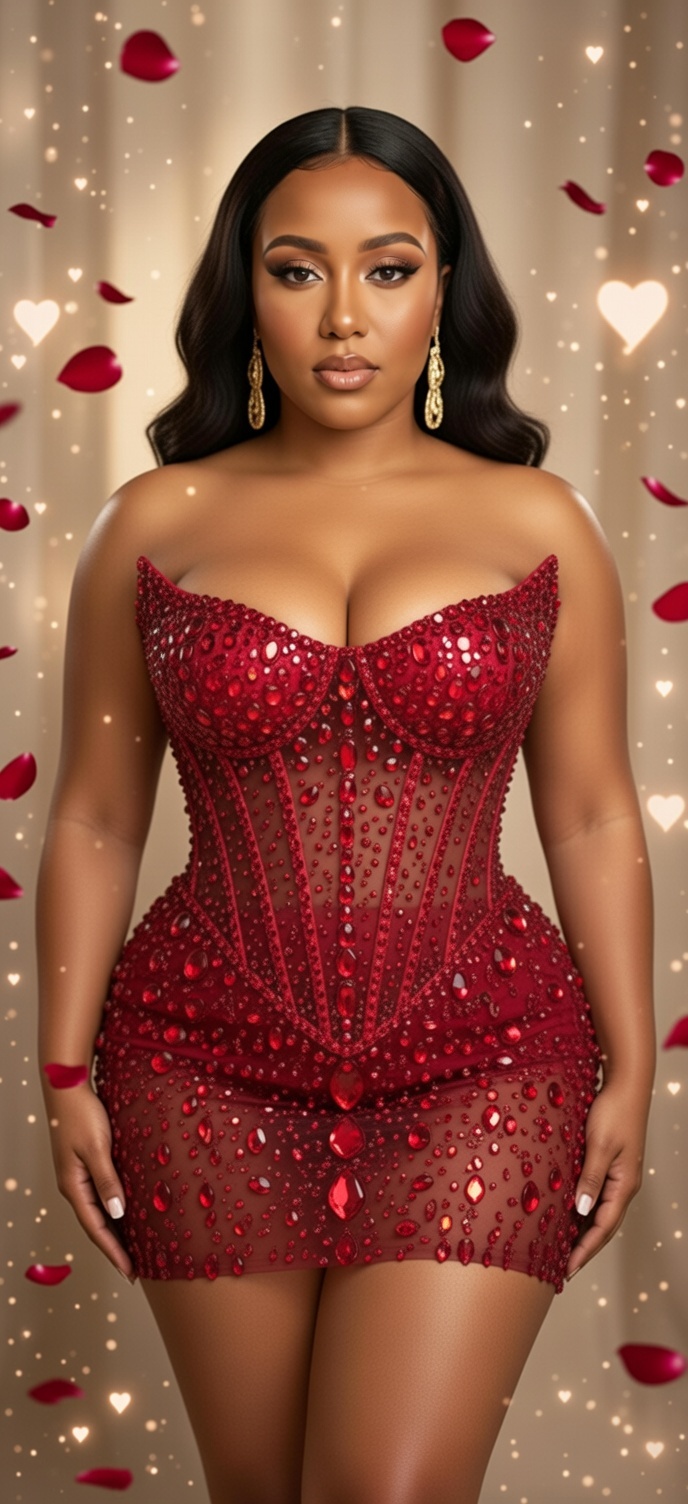 From high-gloss studio sets filled with thousands of red roses to opulent dinner arrivals in luxury vehicles, these prompts capture the movement and texture of premium velvets and satins. Every prompt is engineered to highlight the sheen of red patent leather, the intricate details of custom lace, and that signature romantic glow on diverse, glamorous models. It’s time to own the most romantic time of year with imagery that speaks to your brand’s elite status.