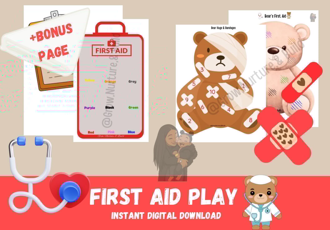 This download includes two first-aid activities plus bonus pretend-play pages, making it perfect for play centers and sensory bins.