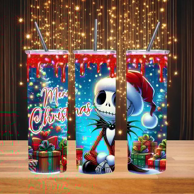 Celebrate the holidays in style with this festive Jack Skellington tumbler! Featuring the beloved Pumpkin King wearing a cheerful Santa hat and the words "MERRY CHRISTMAS" in bold, festive lettering, this tumbler is the perfect blend of spooky and merry. Crafted using high-quality sublimation, the vibrant design is permanently infused, ensuring it won’t fade, peel, or crack over time.