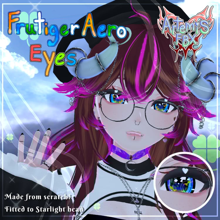 You get a transparent PNGs of the eye textures, there over 23 textures of a variety of colors! Fun to mix and match with and can be easily edited onto any head base! And there's glitter and hue shift maps!