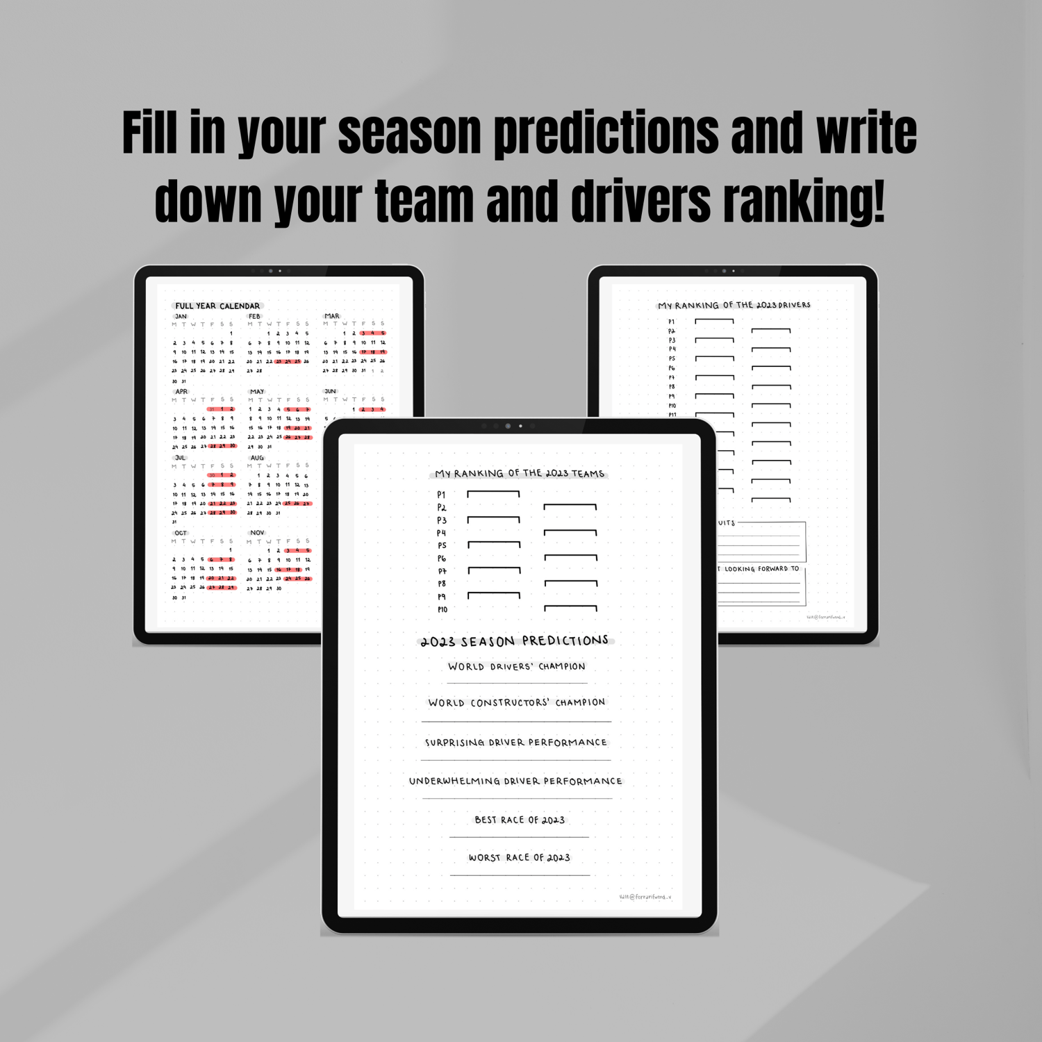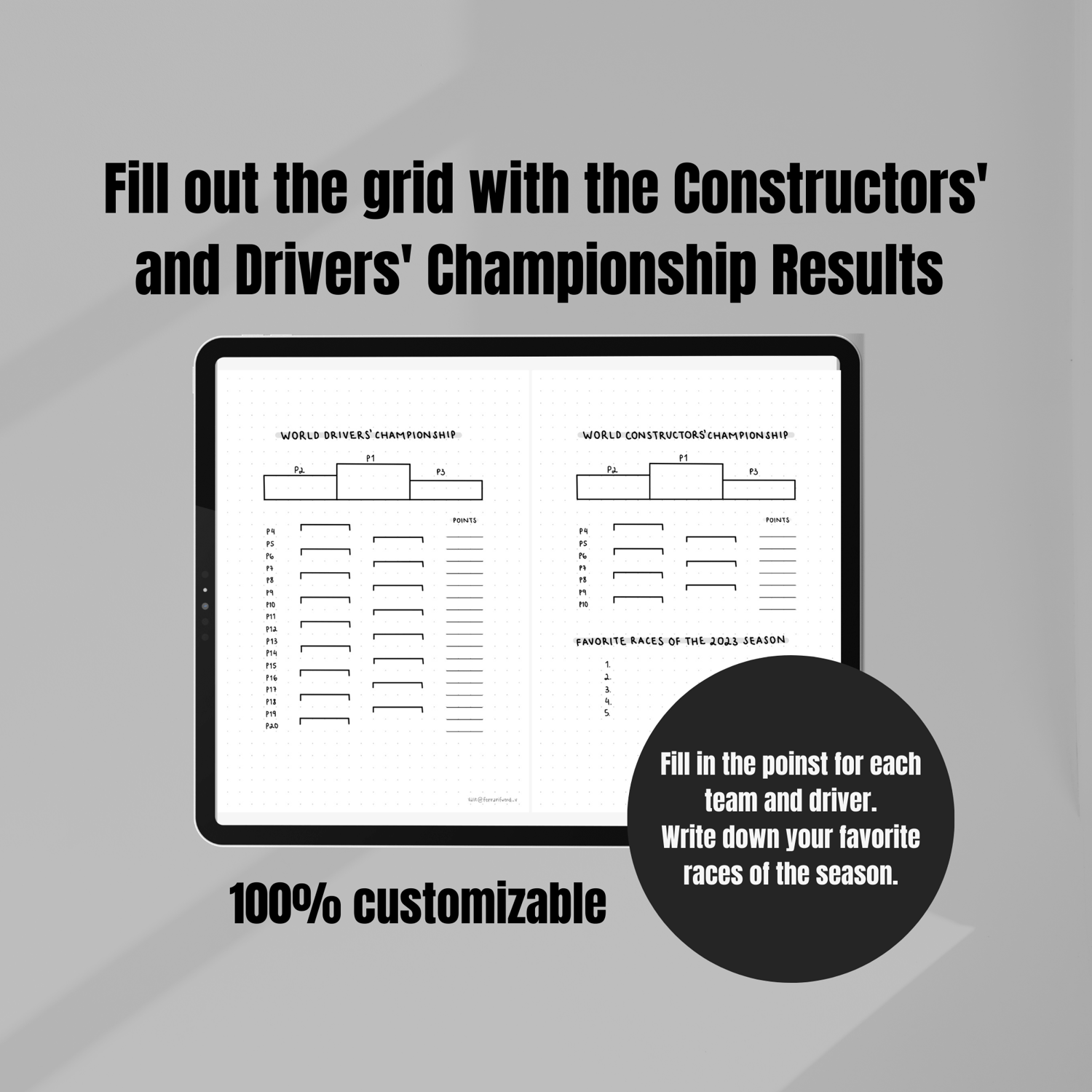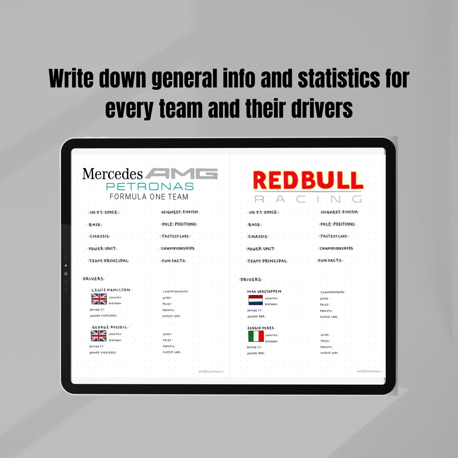 Digital Formula 1 Race Journal, Digital Journal for iPad or Tablet.