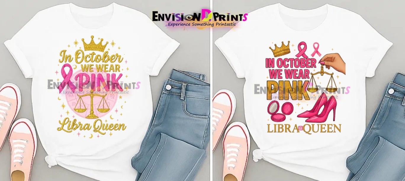 This “In October We Wear Pink – Libra Queen” design blends zodiac glam with breast cancer awareness pride in a stylish, feminine way — perfect for t-shirts, hoodies, and more!💖🎀