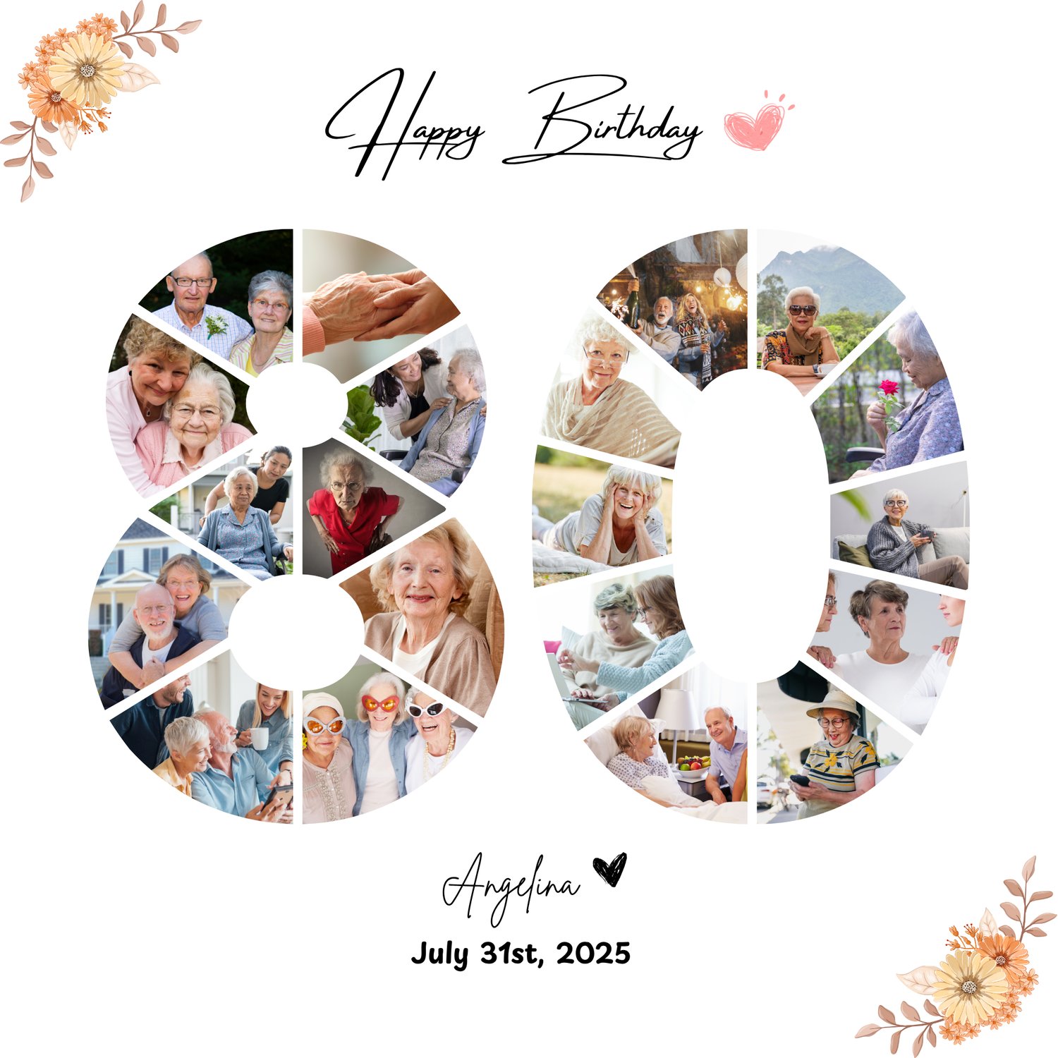 80 Years Birthday Photo Collage Template Happy Birthday Card Editable Canva Design Template