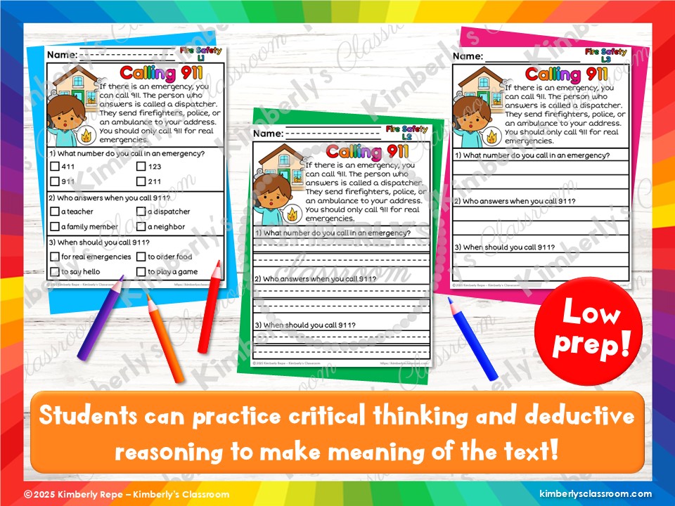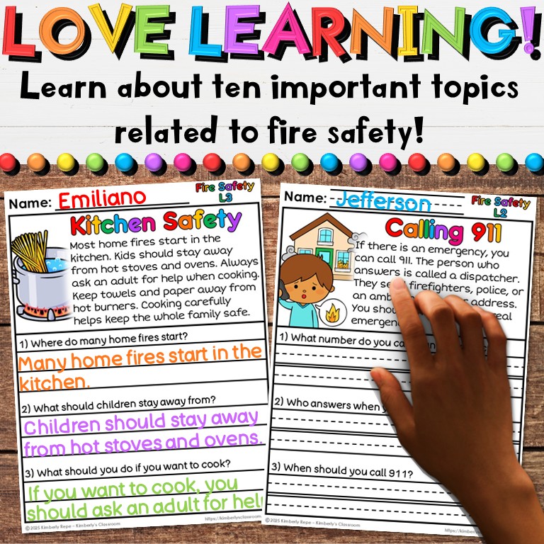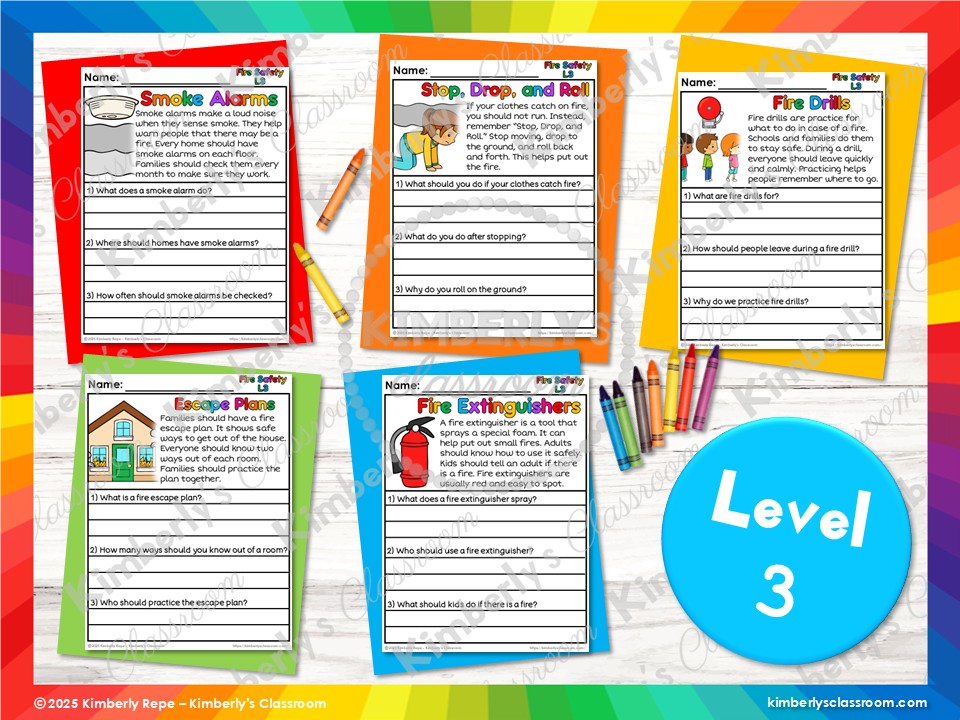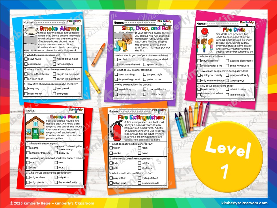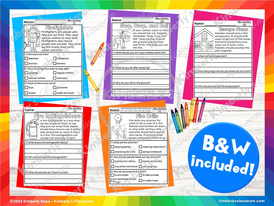 ❤️Looking to teach about fire safety? Learn about 10 important topics related to fire prevention, while practicing important reading comprehension skills and vocabulary with these differentiated worksheets (30 pages + answer key + black & white set)!