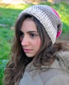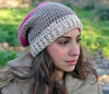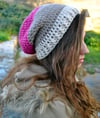 Spice up your days with this slouchy,three-colored, ombre hat! Wear it deep beneath your ears or let your hair down for a more stylish look. It has a loose fit and it is soft and warm. Made from a fine mix of wool and alpaca, this will be the hat that you will want to wear every morning on these cold winter days. Meet the first one of my popsicle series in pink, light brown, and beige...