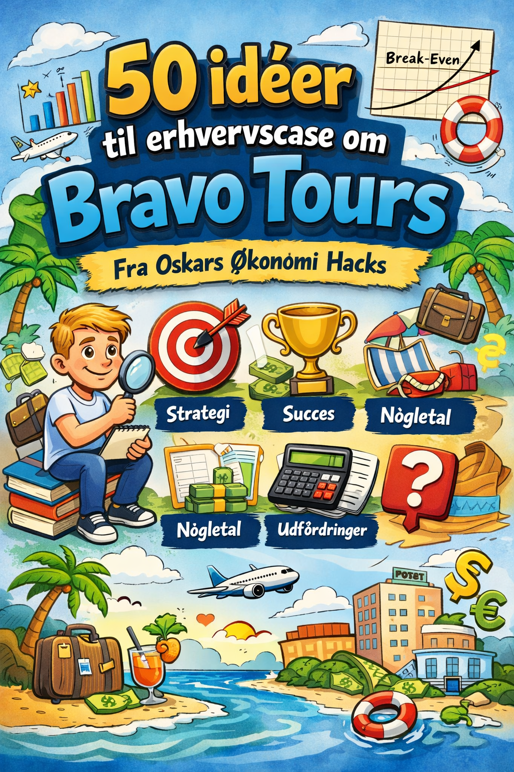 Denne guide giver dig 50 skarpe idéer til din Bravo Tours erhvervscase. Du får konkrete strategiske vinkler, analyser af nøgletal og break-even, og hvordan du håndterer brancheudfordringer. Perfekt til at strukturere din opgave og levere skarpe indsigter, der kan styrke din analyse og argumentation.