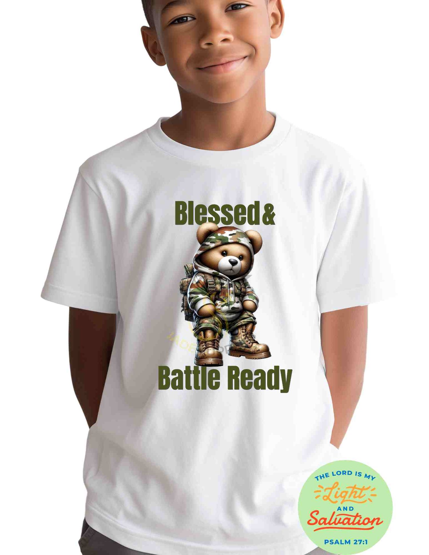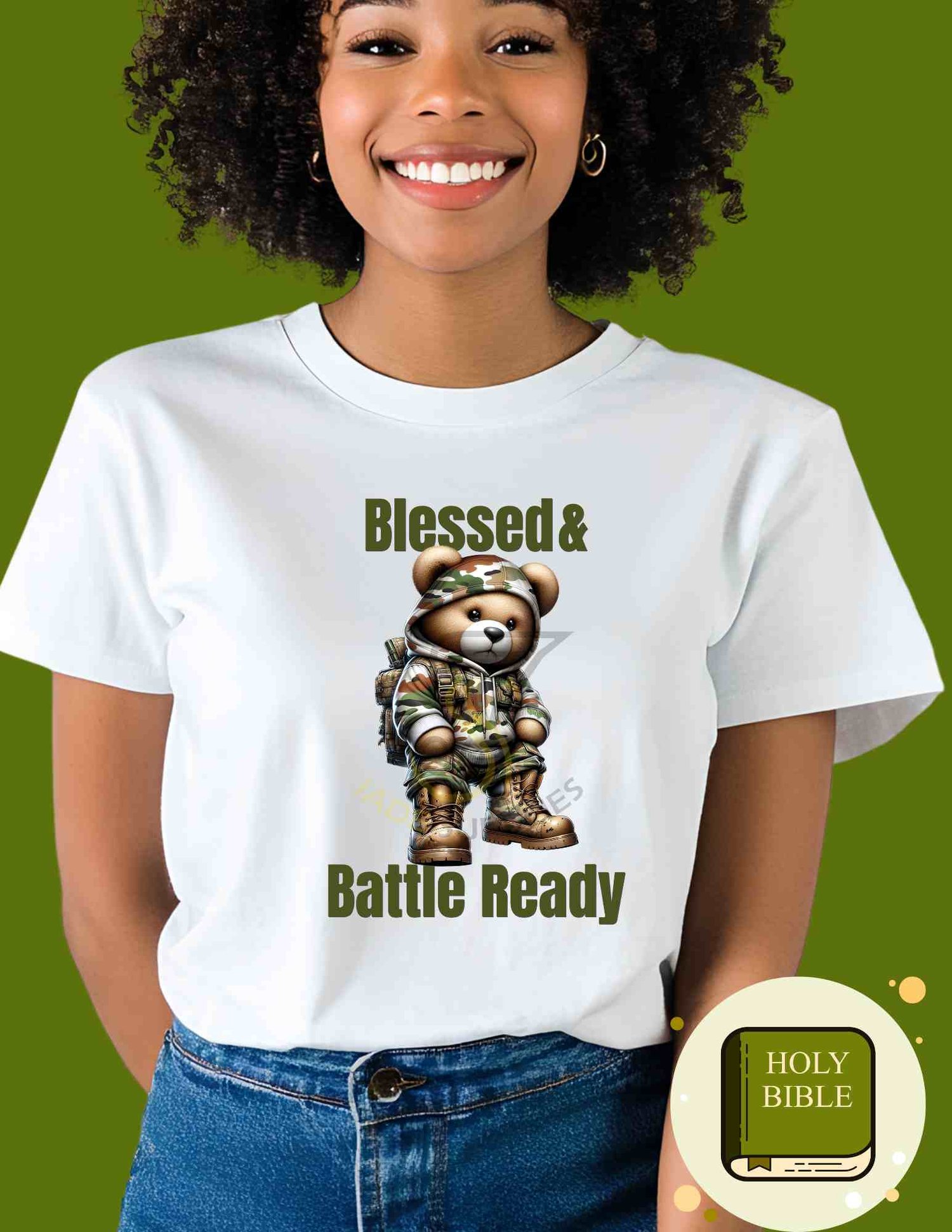 Bring bold vibes and powerful energy to your creations with this Camo Bear “Blessed & Battle Ready” PNG.