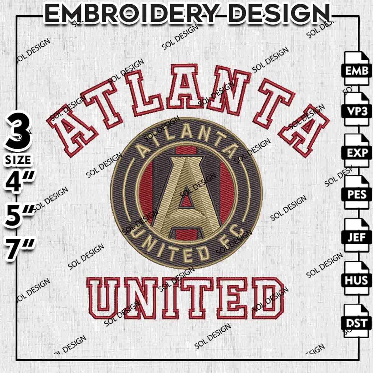 Atlanta United FC Logo Embroidery Designs, Atlanta United FC Embroidery Files, MLS Atlanta United FC Soccer Team Logo Embroidery, Major League Soccer Machine Embroidery Design, Digital Download
