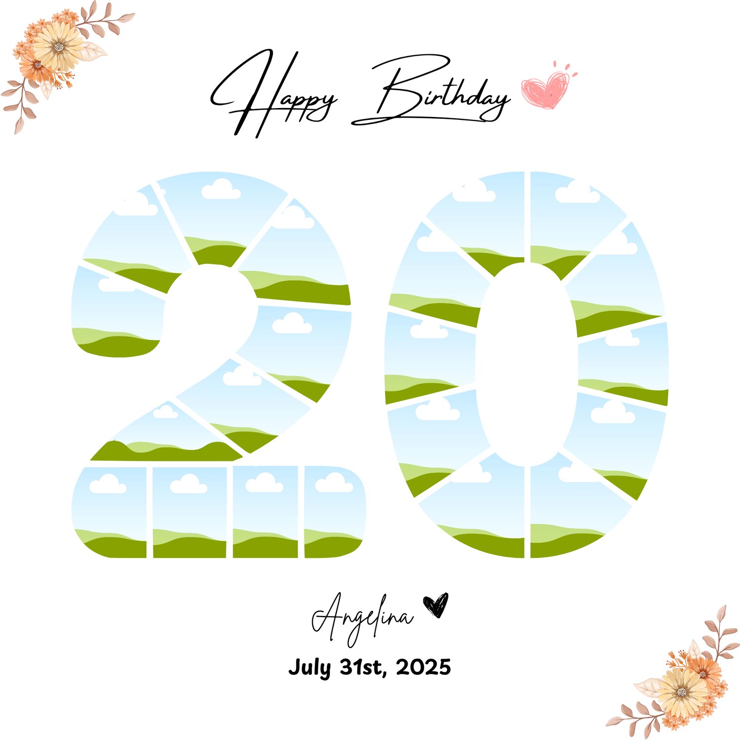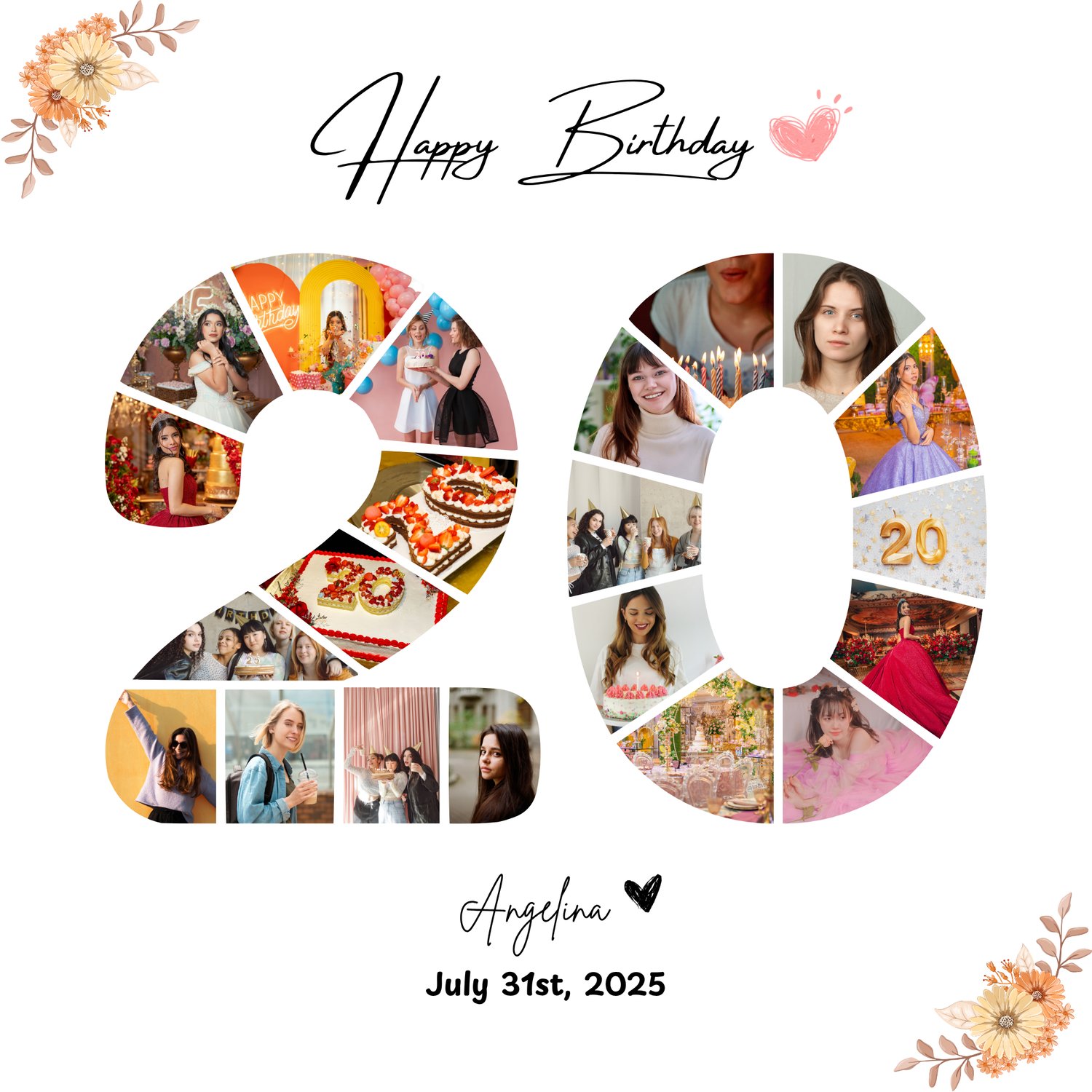 20 Years Birthday Photo Collage Template Happy Birthday Card Editable Canva Design Template
