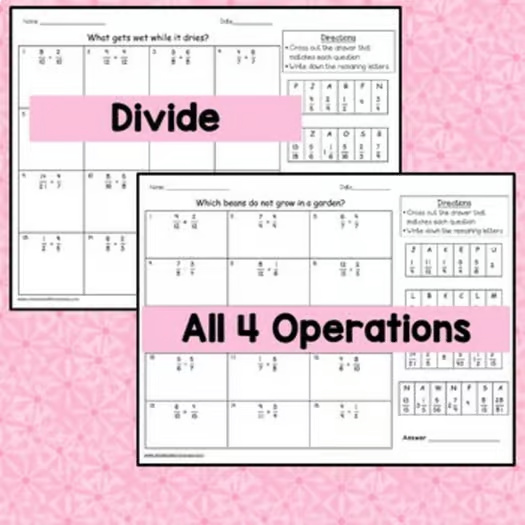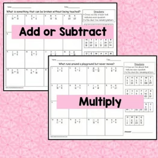 Turn fraction practice into a puzzle-solving adventure! Designed for students ages 9β13 (grades 4β7), these 6 engaging worksheets challenge learners to add, subtract, multiply, and divide fractions in order to crack fun riddles.