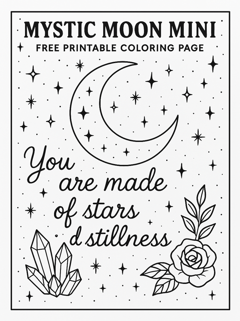 Enjoy this dreamt, hand drawn coloring page filled with celestial vibes, created with intention to help you reconnect and recharge.