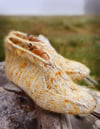 These start with a double sided cast on at the back of the heel. Then they grow, making room under your foot for your heel as they do, until they’re big enough to wrap around your ankle. Then the sides join up and they zoom on down your foot to your toes. They’re all one piece (so you don’t have to assemble anything at the end, just graft a handful of stitches at your toes), they’re easy to make (especially if you’ve ever knit top down socks), and they look astonishingly tidy when you’re done.