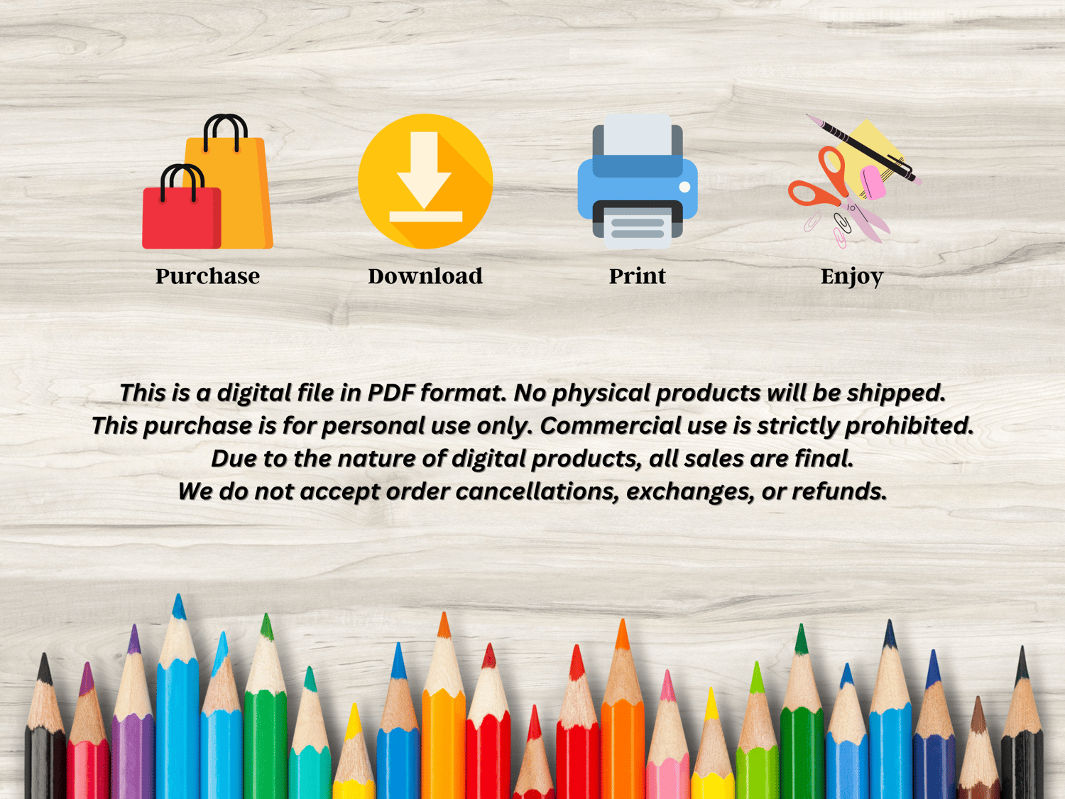 • This purchase is for personal use only. You may not use these files for commercial purposes and may not resell, share, copy, redistribute, or recreate them for any purpose.