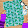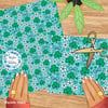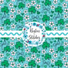 Green shamrocks, ribbon bows, daisy flowers and hearts.