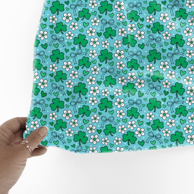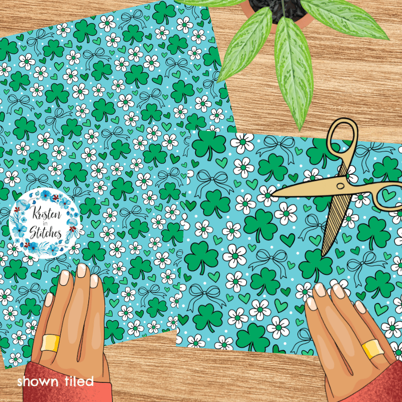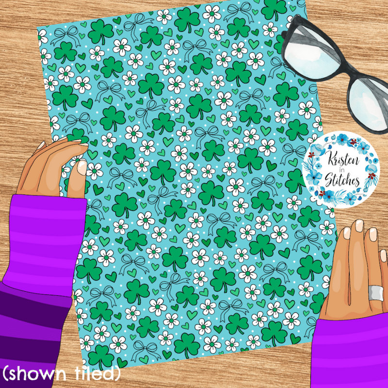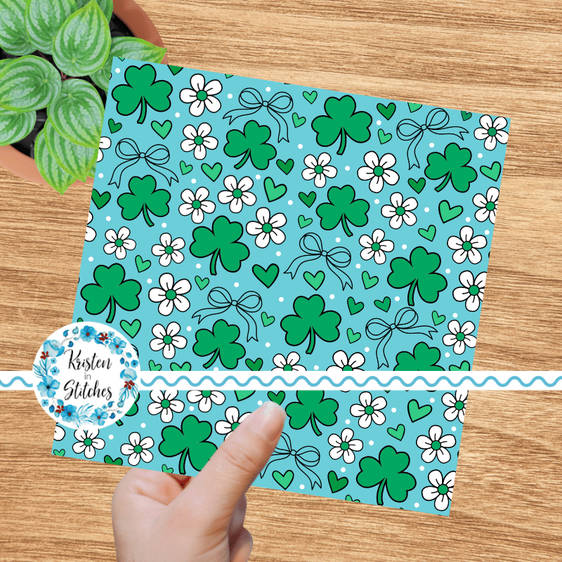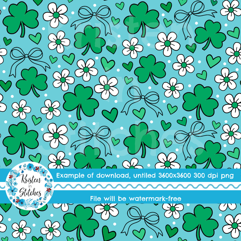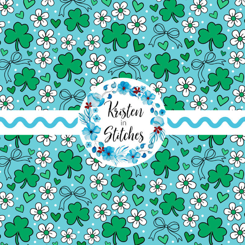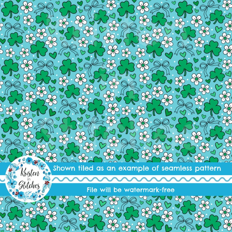 Shamrock Daisy Floral St. Patrick's Day Seamless Pattern, Coquette Bows and Hearts