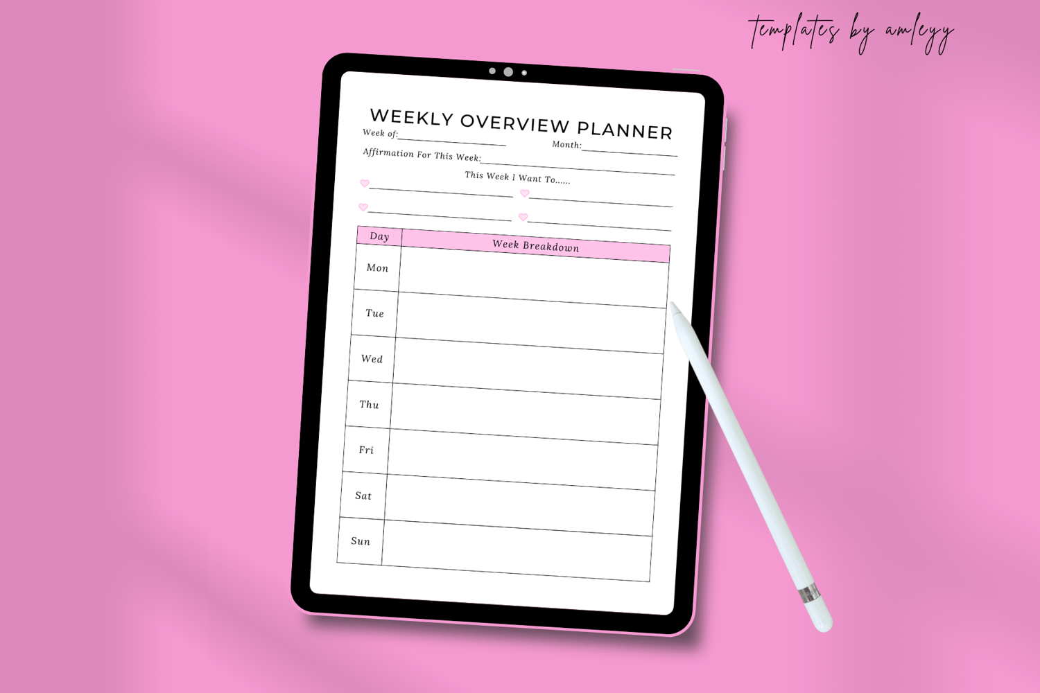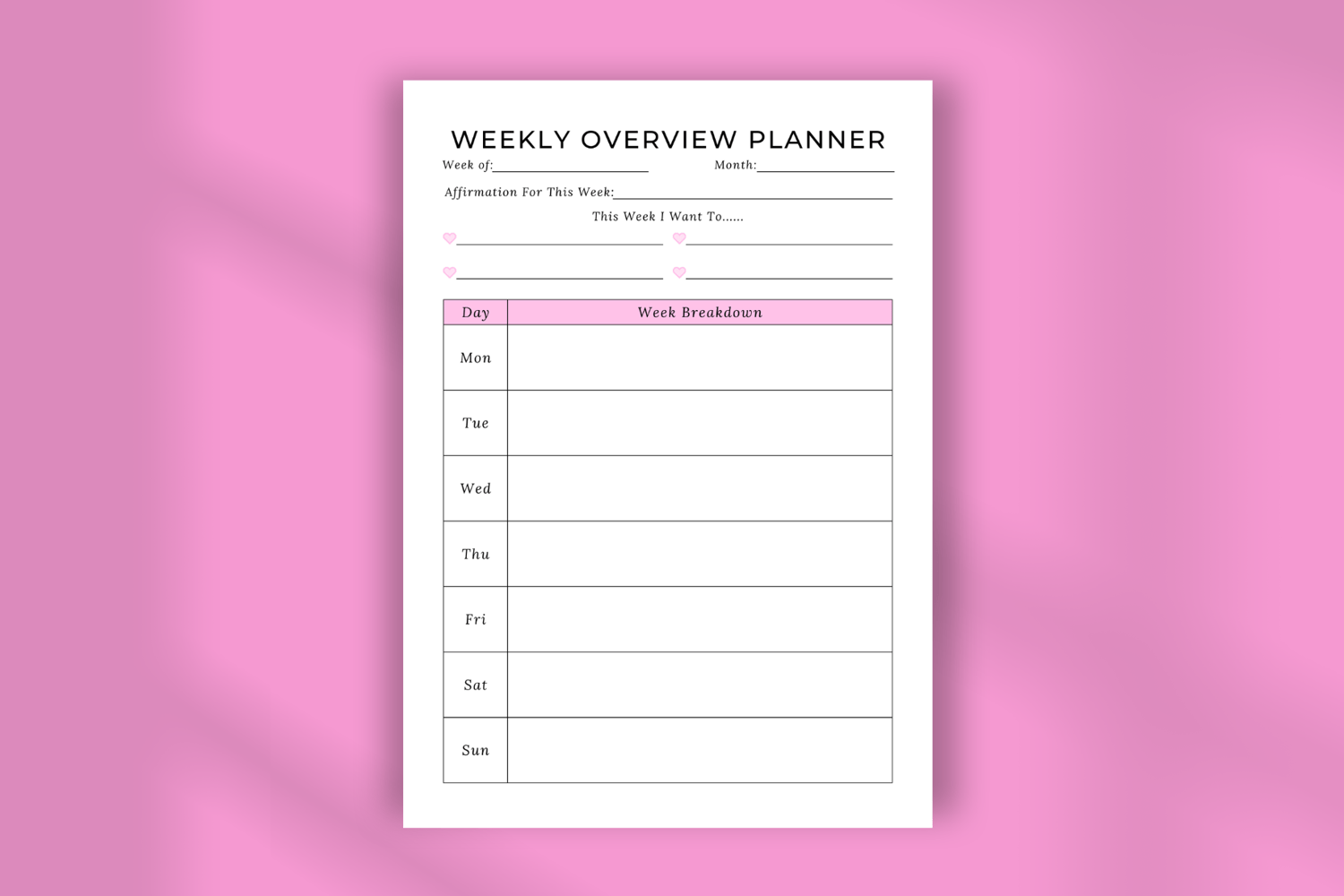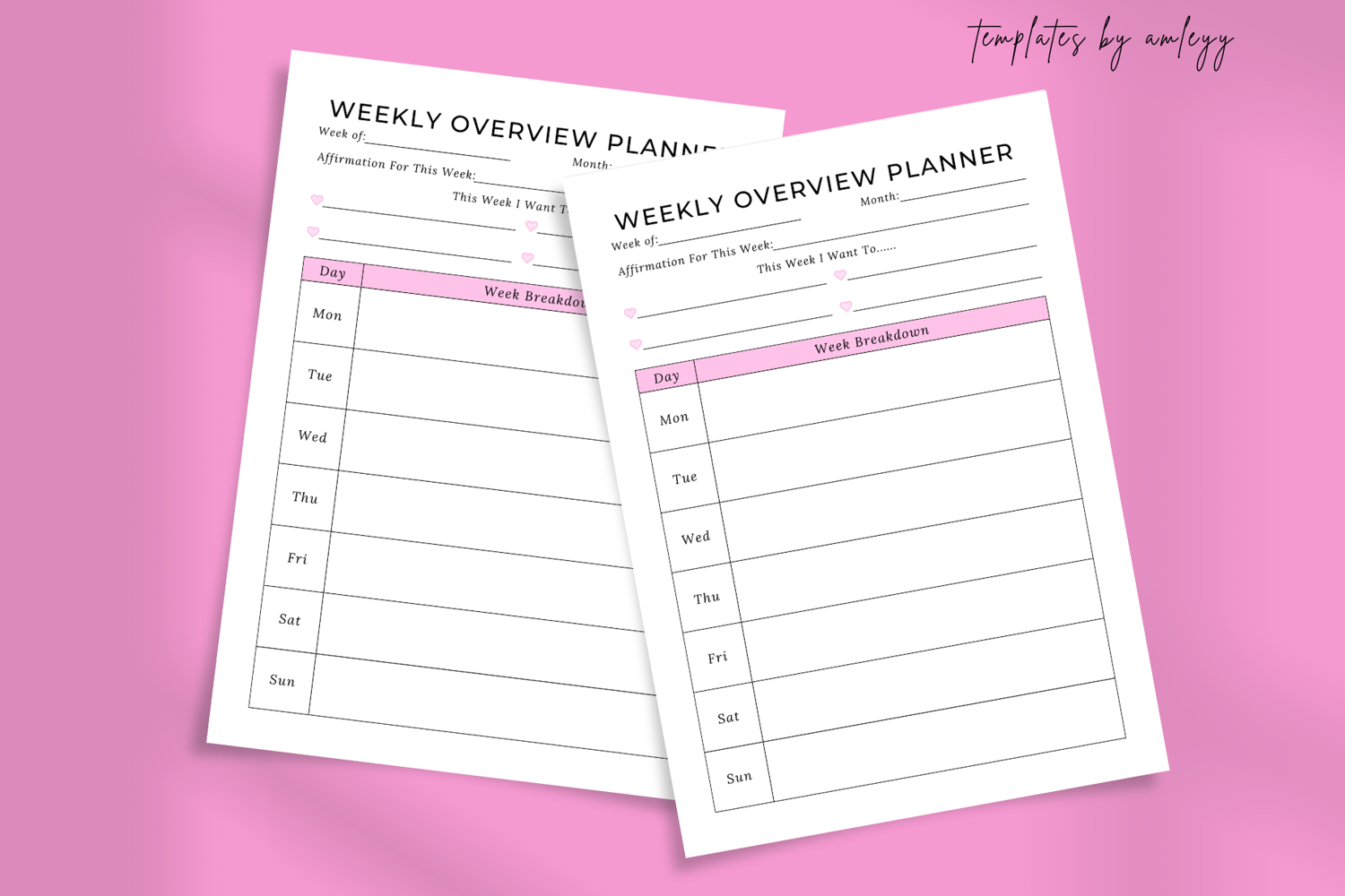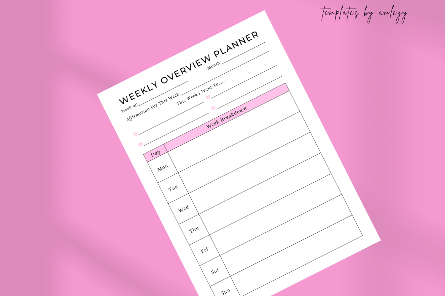 Aesthetic Weekly Overview Planner Template | Editable Canva Weekly Layout | Minimalist Productivity Planner | Printable Weekly Schedule Insert