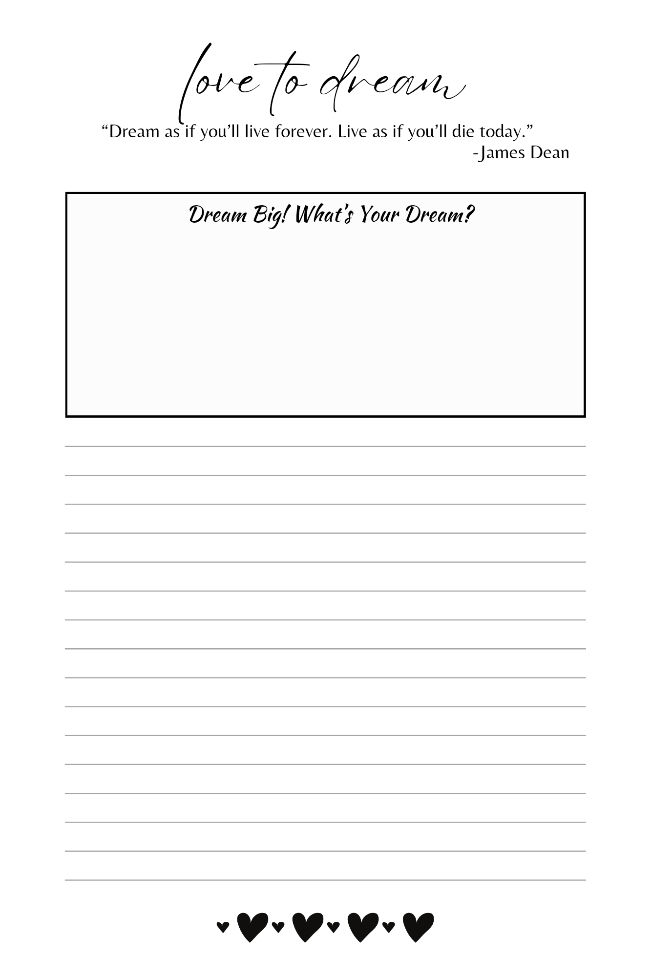 - Space to detail how you are going to dream big