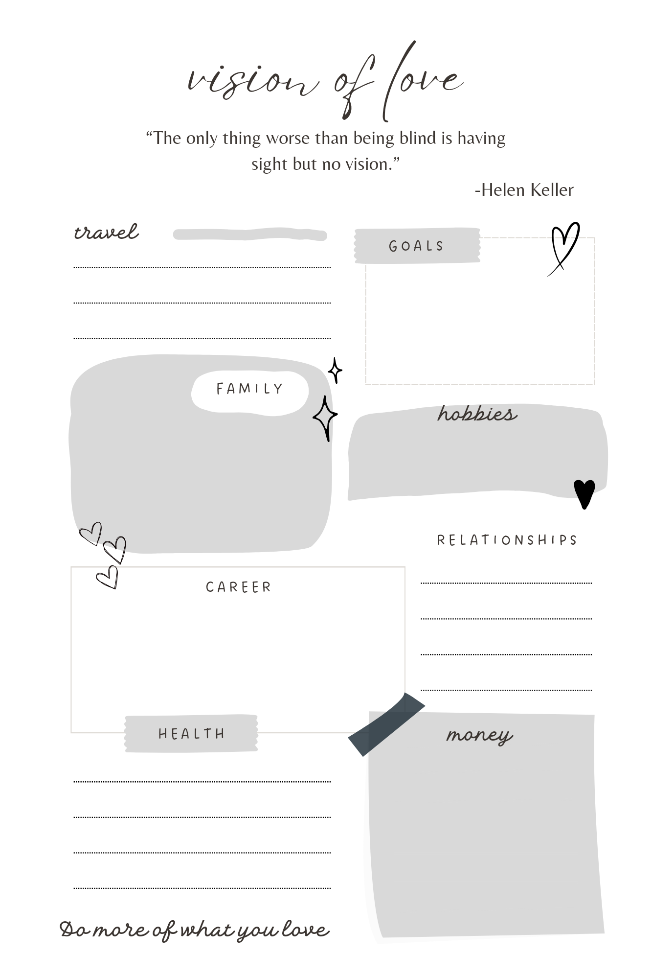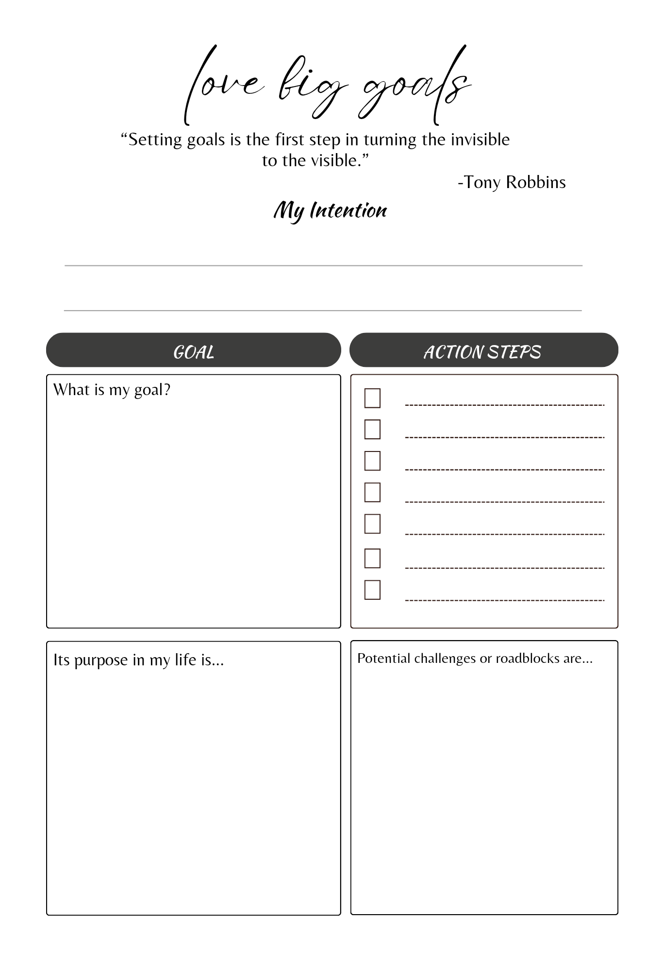 - Big goals and monthly goals checklists