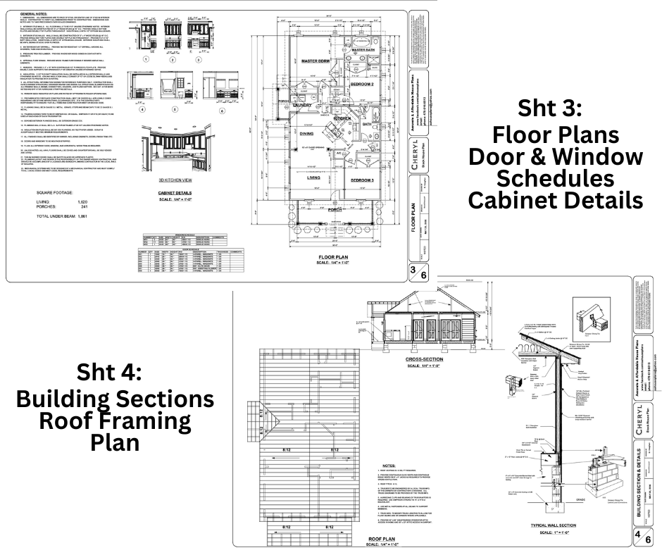Your full construction blueprint set includes everything needed for permitting and building (PDF format, 24”x36”):