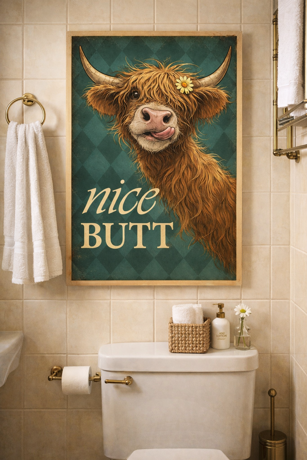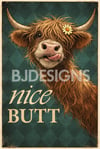 Funny Highland Cow Wall Art Printable – “Nice Butt” Cow Print – Bathroom Décor – Digital Download