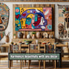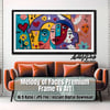 This vibrant composition weaves together bold facial forms, musical notes, and symbolic motifs like hearts, flowers, wings, and teardrops — blending Picasso-inspired structure with a playful modern twist. The textured, painterly finish adds depth and dimension, creating a high-impact visual experience that feels alive and ever-evolving.