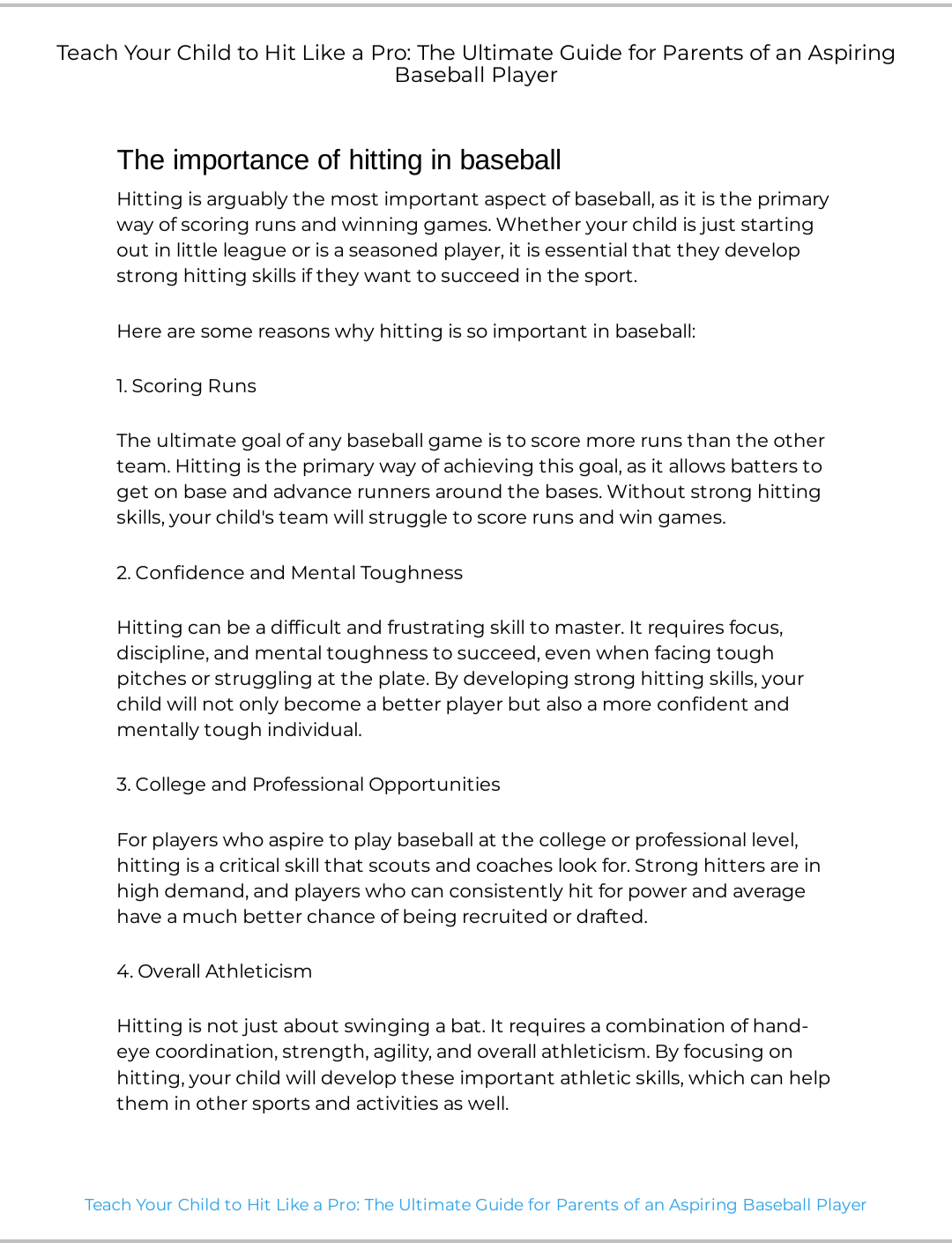 Whether your child is just starting out in baseball or looking to take their skills to the next level, "Teach Your Child to Hit Like a Pro" is the ultimate resource for parents committed to their child's success. Equip yourself with the knowledge and tools to help your young athlete hit like a pro!