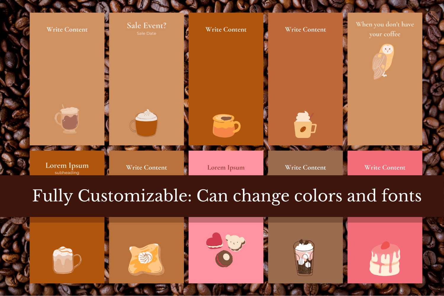 30 Cafe Treats Themed Instagram Story Canva Templates