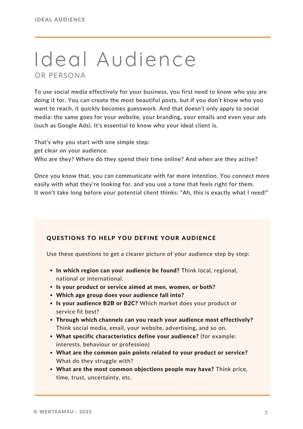 Discover who your ideal client truly is. With practical exercises and a complete fill-in template, you’ll create a clear persona that helps you write better content and shape your services.