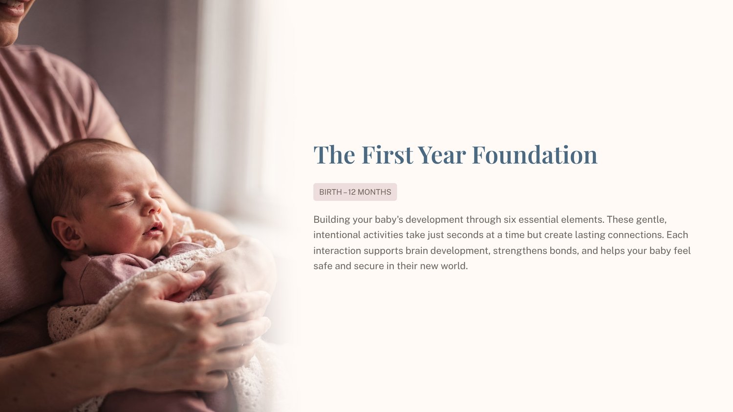 This journey is designed as a five-phase pathway, with each phase gently building upon the last as a child grows. Phase 1 lays the emotional and sensory groundwork, while future phases continue the progression into movement, communication, independence, and early learning skills. Families are not rushing toward milestones; they are walking through them, step by step, with intention and reassurance.