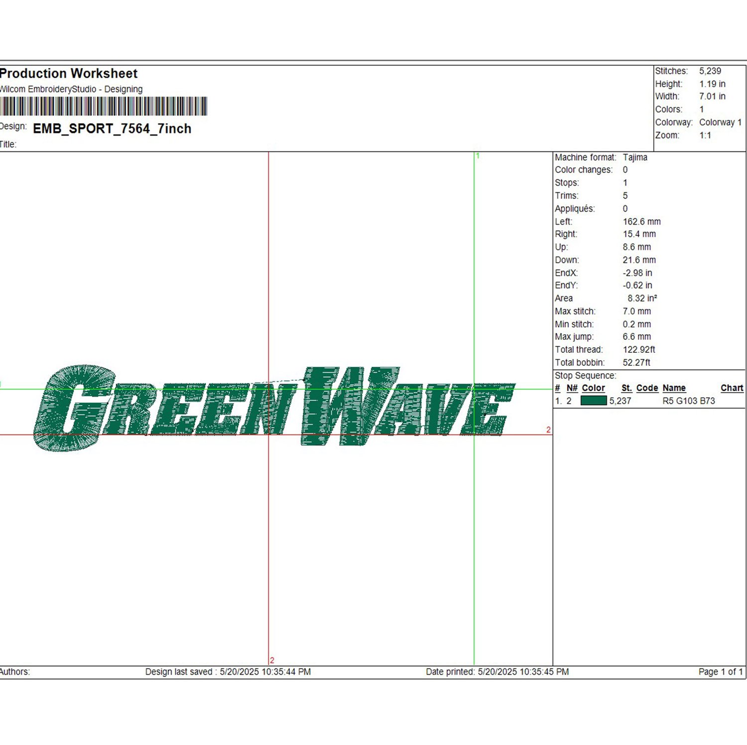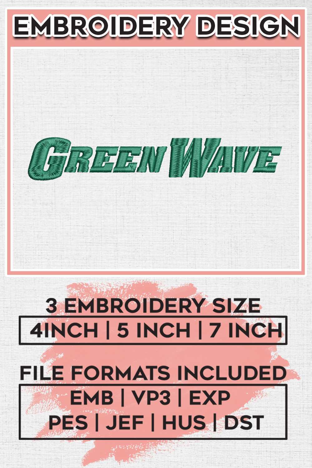 Green Wave NCAA College Football Team Writing Logo Embroidery Designs, NCAA Tulane Green Wave Machine Embroidery Files, NCAA Logo embroidery designs, Ncaa Tulane Green Wave Logo, Digital Download