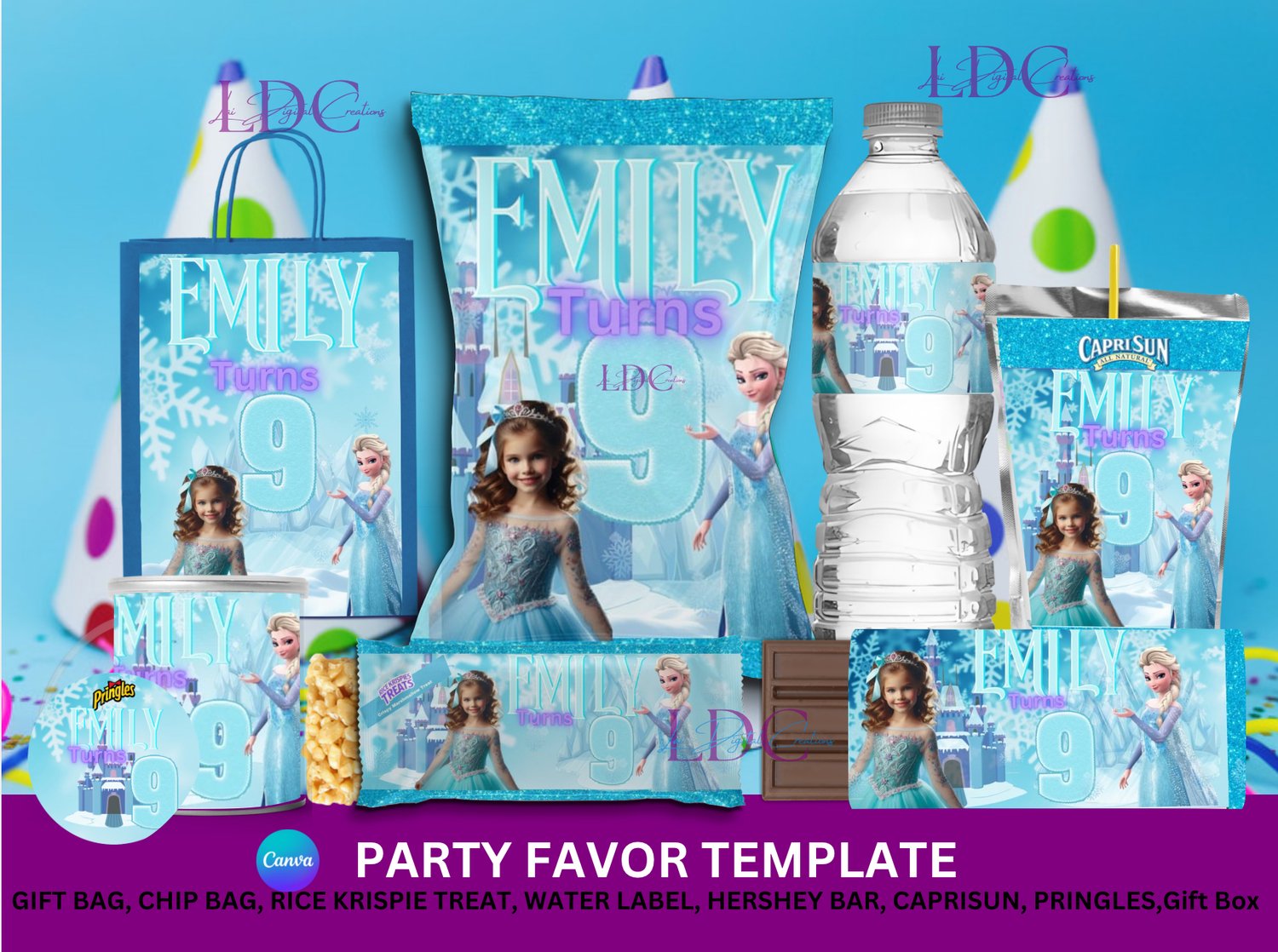 Frozen Party Favor Template Set | Editable Designs for Canva