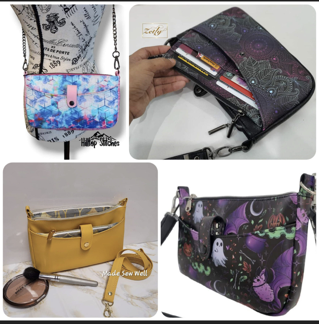 This is an amazing two in one pattern that is a great size for a night out, grocery shopping, etc. It's a crossbody with a zipper wallet that fits perfectly into the slip pocket in the front and also has a main zipper compartment for phones and other necessities.