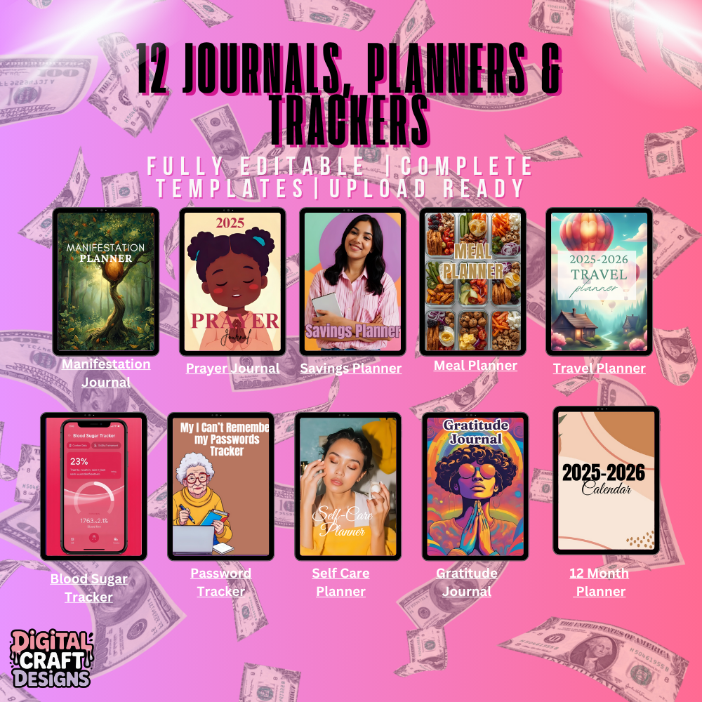 Turn your creativity into consistent cash flow with this done-for-you digital bundle! The 12 Journals, Planners & Trackers PLR Collection is perfect for creators, coaches, educators, and digital sellers who want to launch or expand their online shop — without spending hours designing from scratch.
