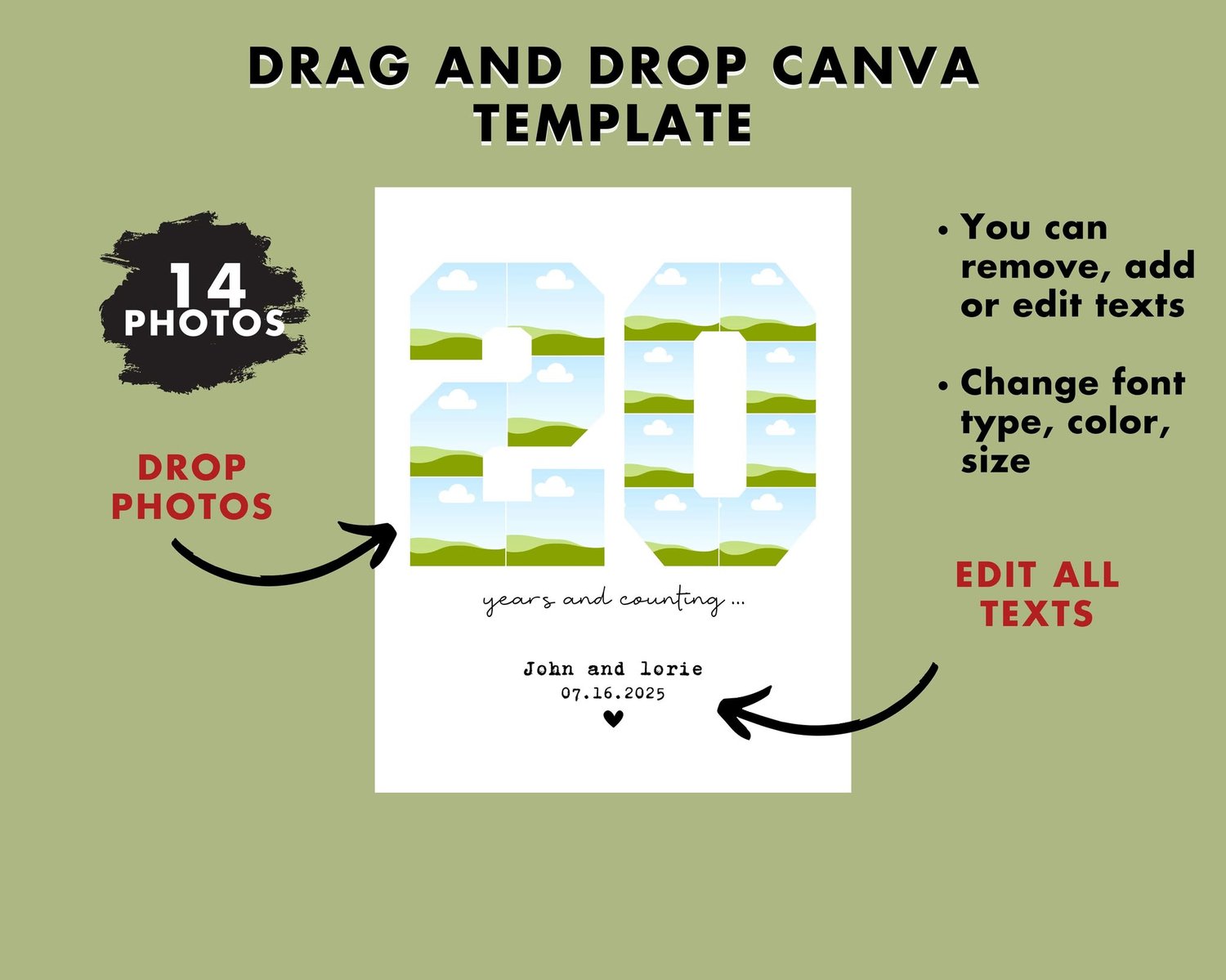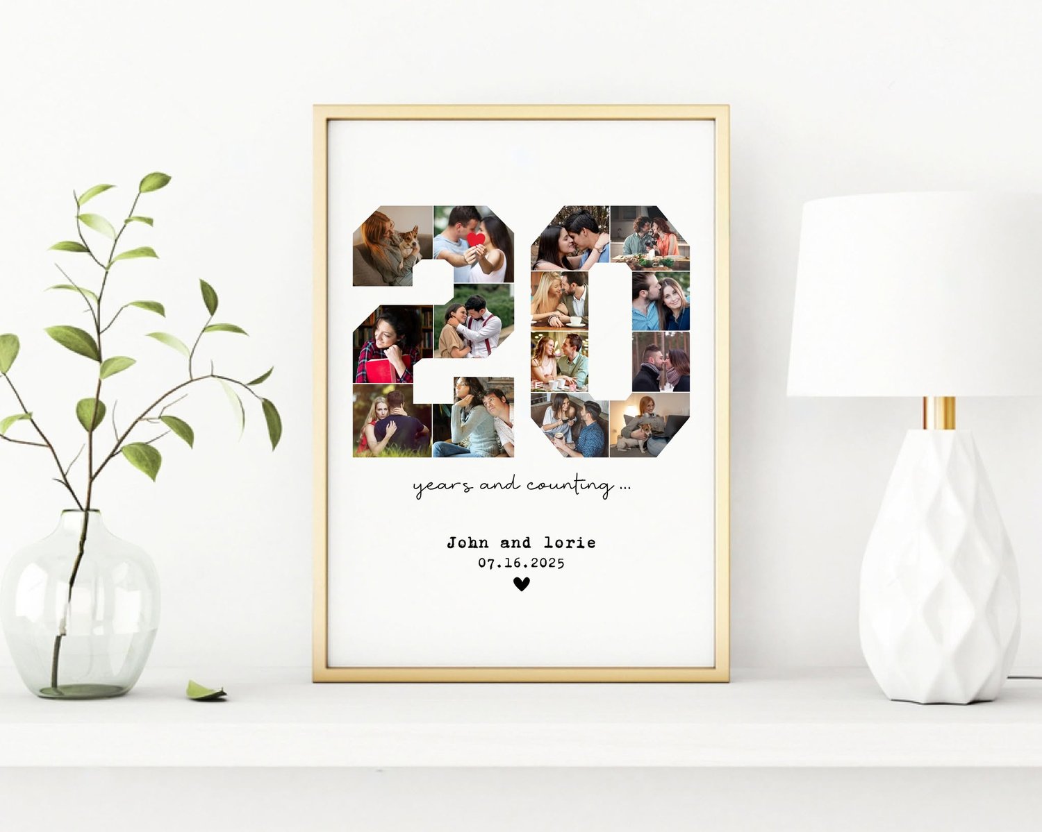 DIGITAL 20th Anniversary Photo collage Template, 20 year gift for boyfriend, Present for Her