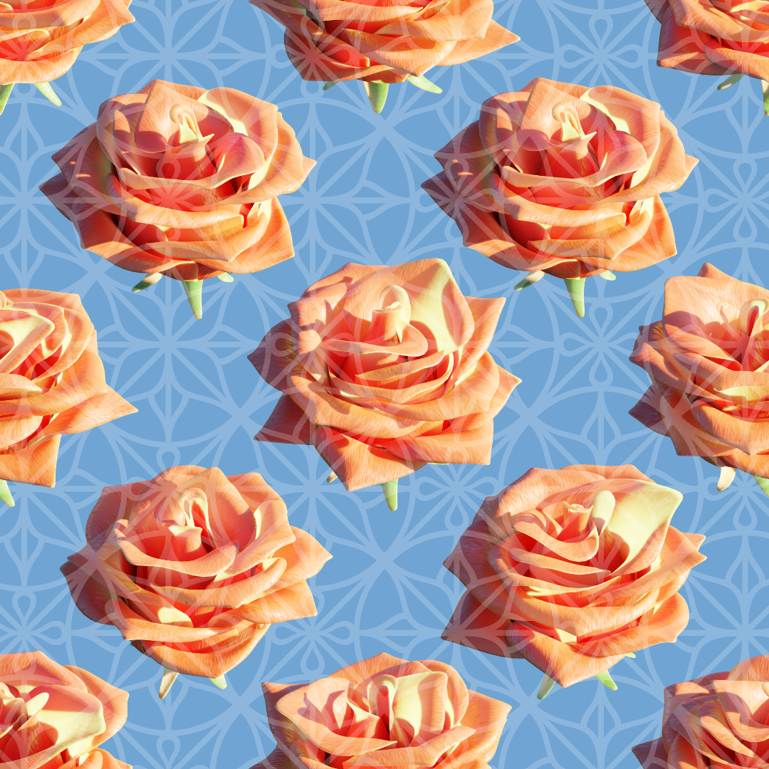 3D Yellow and Orange Roses Seamless Pattern