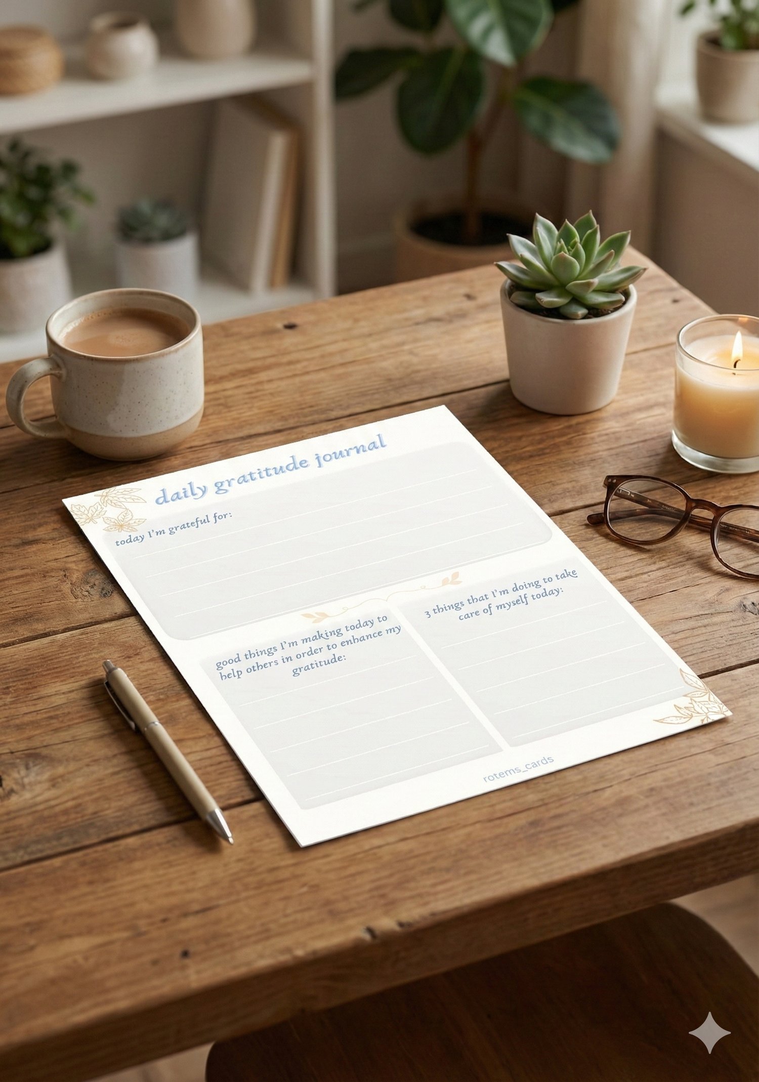 This beautifully designed Printable Daily Gratitude Journal is created to help you slow down, reflect, and cultivate a positive outlook. Whether you stick it on your fridge, insert it into your binder, or use it digitally on your tablet, it’s the perfect companion for your morning routine or evening wind-down.