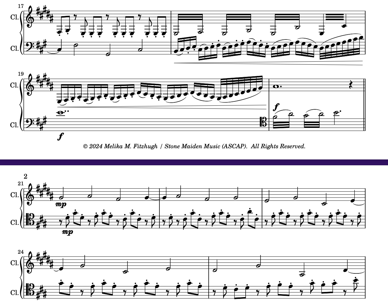 May also be performed on bass clarinet; if so, please swap the last note of each part so that the clarinet plays the concert D and the violoncello plays the E.