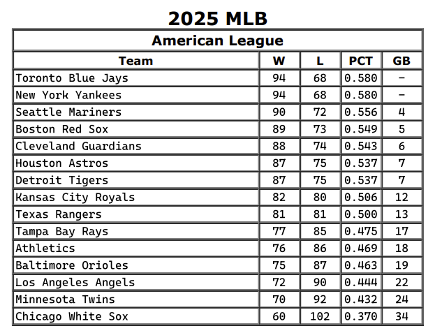 Clicking the "Create HTML Standings" button will generate an HTML files which will be loaded into your default browser.