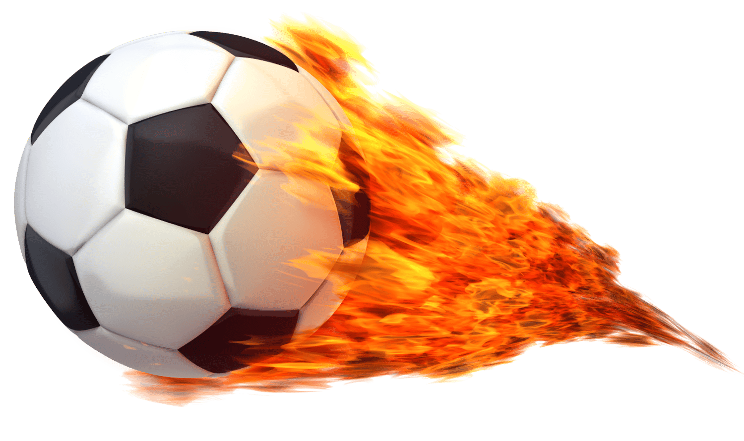 An image of a soccer ball on fire with a long trail.