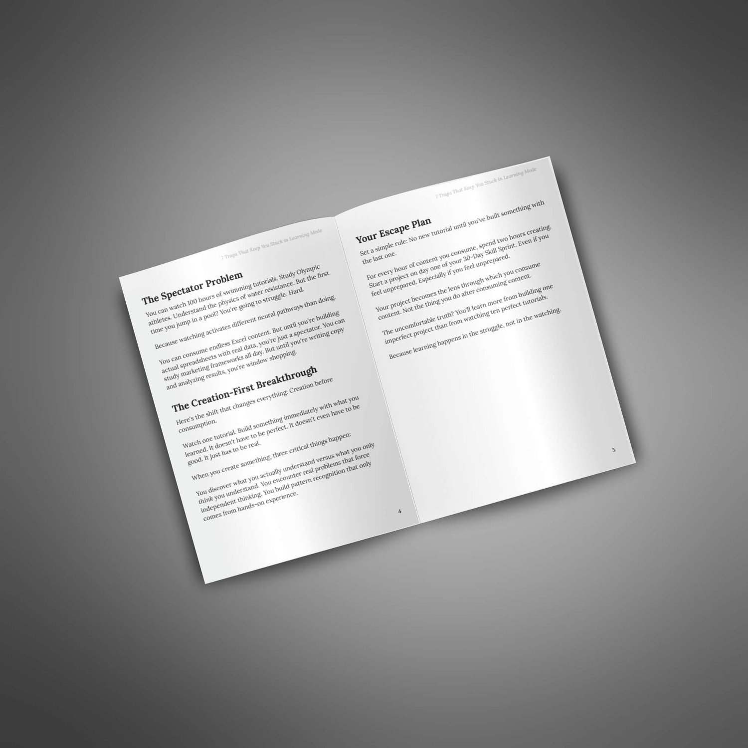 Every trap comes with a clear way out. Small shifts in how you approach learning. Simple changes that push you from passive consumption to active skill-building. You don't need more information. You need the right perspective and a gentle push in a better direction. This guide gives you both. By the end, you'll know exactly which traps have been holding you back and how to step around them starting right now.
