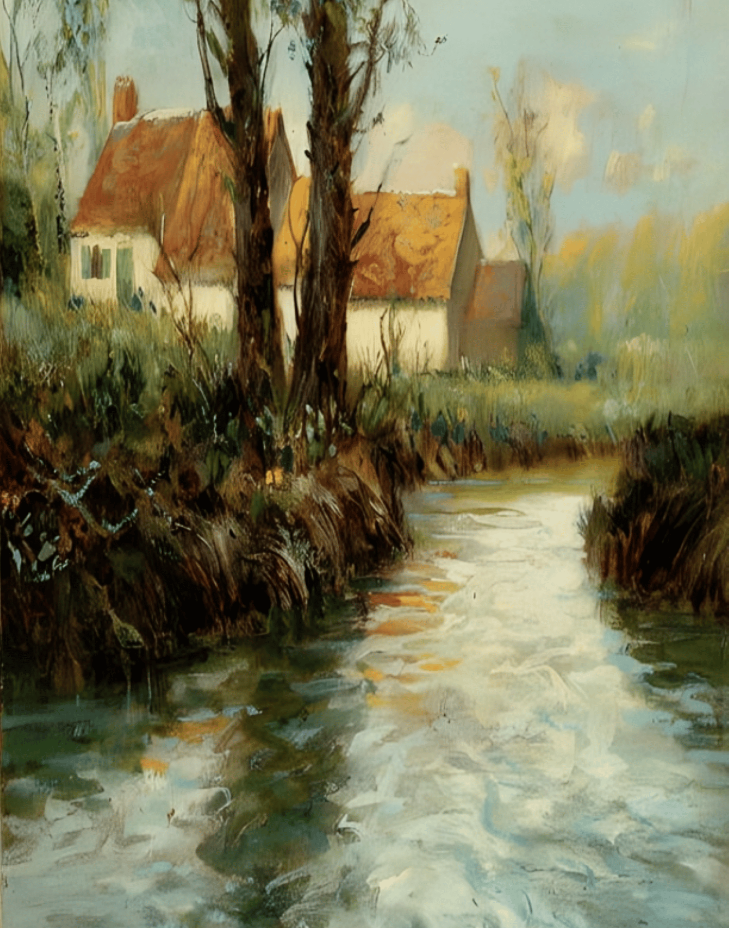 Lake Village, Vintage Village, Top Art, Nostalgic Rural life, Nature, Cool Nature, Beautiful Nature, Sunrise, Natural Landscape, Wall Art, Digital Art.