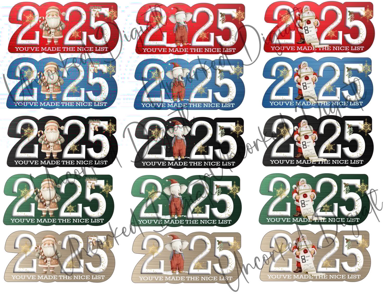 A set of 15 2025 nice list keyrings to fit the blanks from Woodform Crafts - Product - WC2262