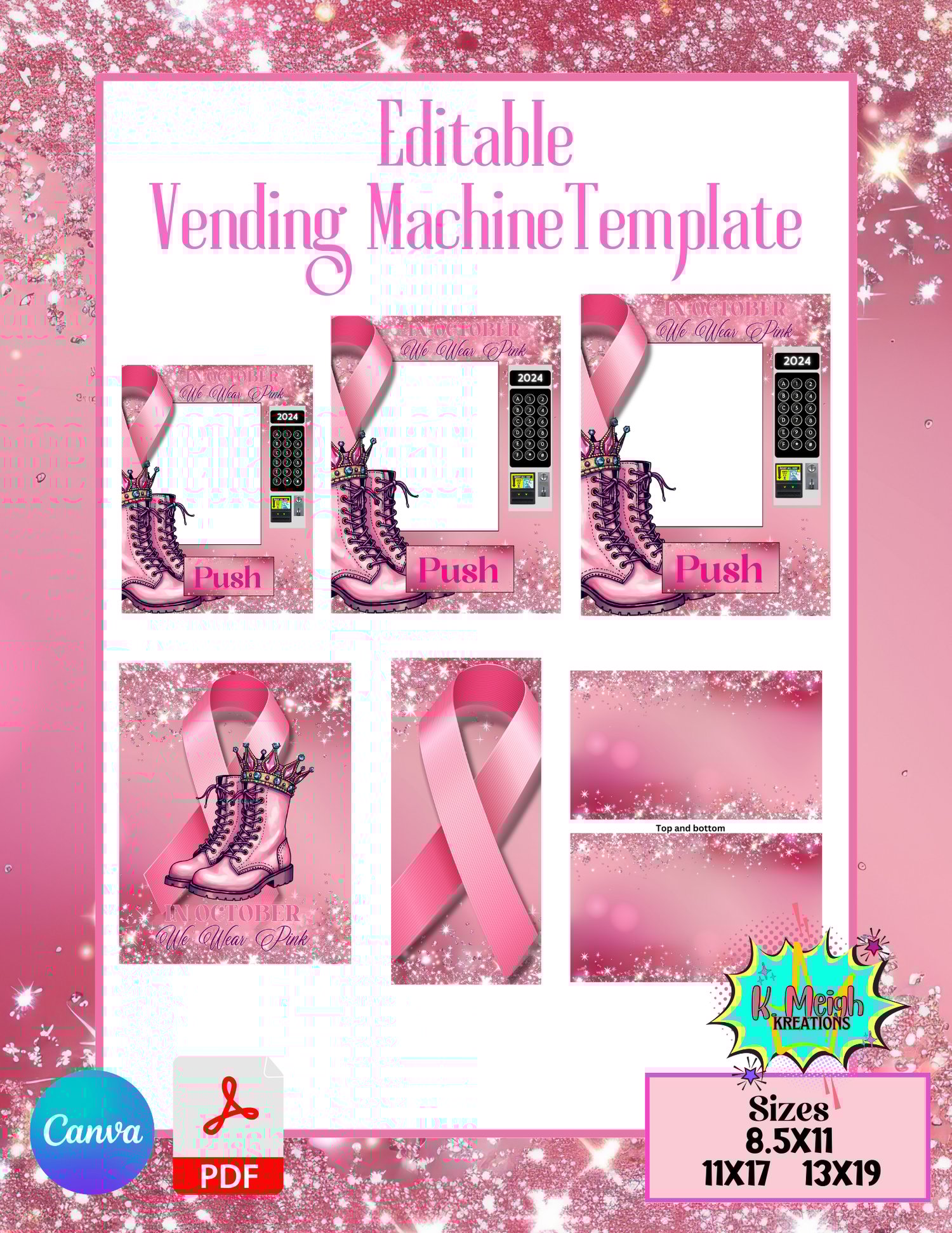 3 Size Editable In October We Wear Pink Breast Cancer Themed Vending Machine Template- Canva Link and PDF File