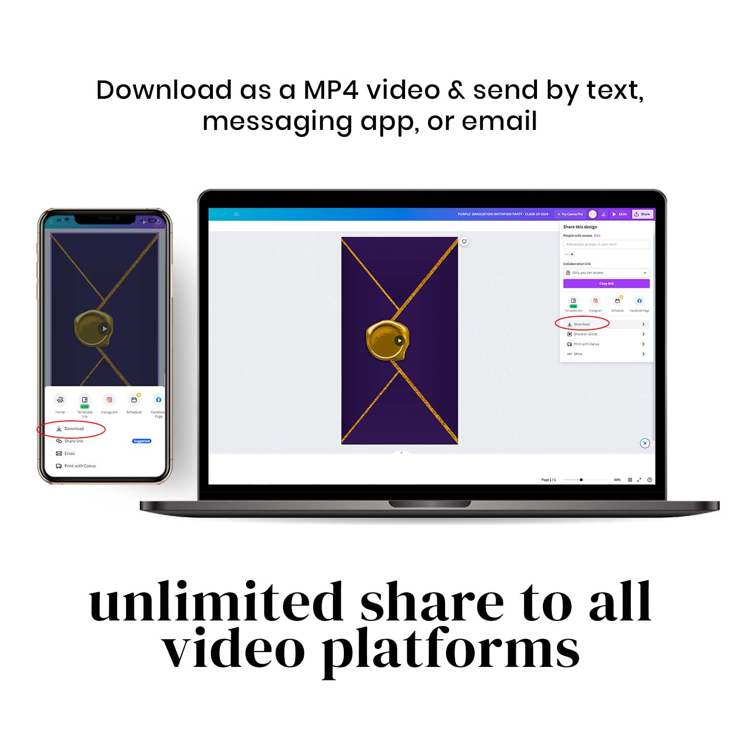 Purple Envelope Graduation Party Invitation Video Canva Template
